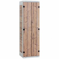 Šatní skříňky skládaj??cí se ze dvou samostatně uzamykatelných oddílů. Atraktivní design vhodný do kanceláří, škol, fitness center, nemocnic, aquaparků apod. Šatník je vyroben ze svařeného ocelového plechu o tloušťce 0,8 - 1 mm, boční výplně a dveře z laminovaných dřevotřískových desek o tloušťce 18 mm, hrany chráněny 2 mm ABS hranou. Účinné odvádění vlhkosti z oděvů větracími otvory v horní a spodní části korpusu. Dveře jsou uloženy na vnějších pantech s možností otevření dveří až 170°. Uzamykání otočným cylindrickým zámkem na klíč. Každý samostatný oddíl je vybaven dvěma policemi a chromovanou tyčí na ramínka.Svařované šatní skříně Tony I, 2 oddíly, cylindrický zámek