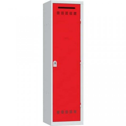 Speciální svařované šatní skříně dělené do částí pro skladování různých pomůcek záchranných týmů. Skříň obsahuje tyč na ramínka (nosnost 30 kg) s dvěma háčky, je rozdělena mezistěnou pro uložení čistého a špinavého oděvu. Uzamykání trojbodovým cylindrickým zámkem se dvěma klíči nebo otočným uzávěrem s visacím zámkem (není součástí dodání). Ventilace ve dveřích, možnost umístění štítku se jménem.Svařované šatní skříně Vinco, 1 oddíl, 500 mm, cylindrický zámek