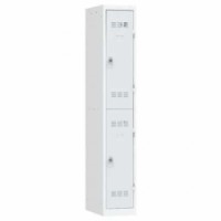 Více-oddílová šatní skříň svařovaná z ocelového plechu tloušťky 0,7 mm. Každý oddíl je vybaven tyčí na ramínka a dvěma háčky (uzamykání otočným uzávěrem na visací zámek - není součástí dodávky). Perforovaná dvířka zajišťují účinné odvětrávání vnitřního prostoru. Možnost umístění štítku se jménem.Svařované šatní skříně Vinco, 1 sloupec, 2 boxy, 300 mm, otočný uzávěr