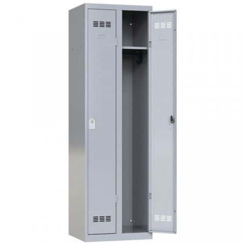 Šatní skříň svařovaná z ocelového plechu tloušťky 0,7 mm. Každý oddíl je vybaven tyčí na ramínka a dvěma háčky. Uzamykání jednobodovým cylindrickým zámkem se dvěma klíči. Perforovaná dvířka zajišťují účinné odvětrávání vnitřního prostoru, možnost umístění štítku se jménem.Svařované šatní skříně Vinco, 2 oddíly, 300 mm, cylindrický zámek