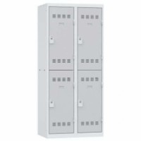 Více-oddílová šatní skříň svařovaná z ocelového plechu tloušťky 0,7 mm. Každý oddíl je vybaven tyčí na ramínka a dvěma háčky (uzamykání cylindrickým zámkem se dvěma klíči). Perforovaná dvířka zajišťují účinné odvětrávání vnitřního prostoru. Možnost umístění štítku se jménem.Svařované šatní skříně Vinco, 2 sloupce, 4 boxy, 400 mm, cylindrický zámek