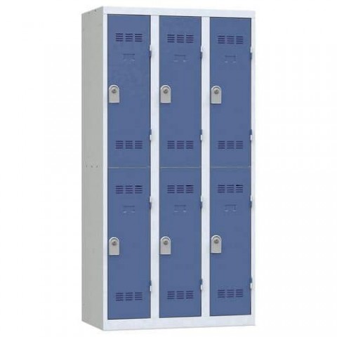 Více-oddílová šatní skříň svařovaná z ocelového plechu tloušťky 0,7 mm. Každý oddíl je vybaven tyčí na ramínka a dvěma háčky (uzamykání cylindrickým zámkem se dvěma klíči). Perforovaná dvířka zajišťují účinné odvětrávání vnitřního prostoru. Možnost umístění štítku se jménem.Svařované šatní skříně Vinco, 3 sloupce, 6 boxů, 300 mm, cylindrický zámek