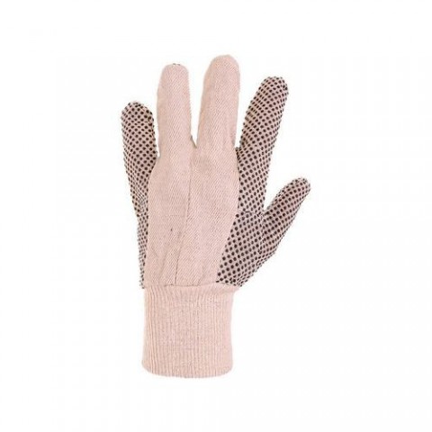 Textilní rukavice, dlaň a prsty pokryty PVC terčíky. Doporučené použití: manipulace s lehčím zbožím v suchém prostředí. Odvětví: logistika, skladování, stavebnictví. Velikost: 10Textilní rukavice CXS GABO, s PVC terčíky, bílé