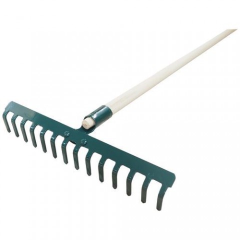 Na vyhrabávání nečistot, listí nebo staré trávy, srovnávání nerovností půdy v záhonech nebo parkových úpravách.TOPTRADE hrábě standard, s dřevěnou násadou