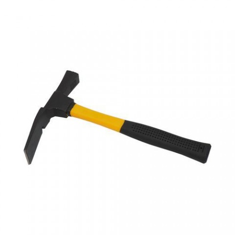 Kladivo na opracování materiálů ve stavebnictví, zejména na úpravu cihel, tvárnic, tvrdé malty, lepidla atd.TOPTRADE kladivo zednické, se sklolaminátovou násadou, pogumovanou rukojetí a vytahovákem, 600 g