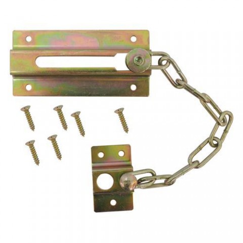 Řetěz na dveře, dveřní řetízek, součást jednoduchého mechanického zajištění majetku, vhodný zejména do interiéru.TOPTRADE řetěz dveřní, niklovaný, bezpečnostní, 75 mm