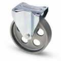 Pevné litinové kolo určené do prostředí s vyššími teplotami. Není odolné vůči kyselinám a chlórovaným rozpouštědlům.Litinové transportní kolo s přírubou, průměr 100 mm, pevné, kluzné ložisko