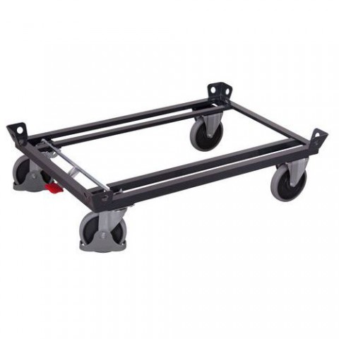 Transportní vozík bez ložné plochy, vhodný pro umístění palety nebo klecové palety. Záchytné rohy a upevňovací očka. 2 pevná a 2 otočná kola s brzdou EasySTOP. Šedá kola z termoplastické pryže nezanechávající stopy na plastovém ráfku s přesnými kuličkovými ložisky.Transportní plošiny na palety, do 500 kg