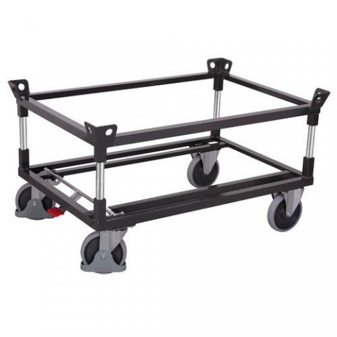 Transportní plošina s kovovou nástavbou z pozinkovaných trubek se záchytnými rohy a upevňovacími oky. Vhodná pro umístění palety nebo klecové palety. Nástavba je odnímatelná. 2 pevná a 2 otočná kola s brzdou EasySTOP. Šedá kola z termoplastické pryže nezanechávající stopy na plastovém ráfku s přesnými kuličkovými ložisky.Transportní plošiny s nástavbou na palety, do 500 kg