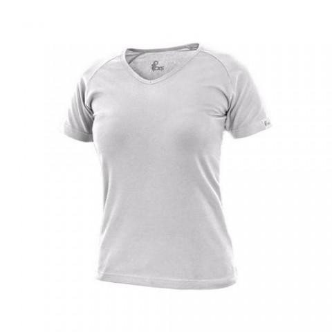 Dámské tričko s průkrčníkem do V. Krátký rukáv raglánového typu. Střih zvýrazňující dámskou postavu a elastan pro pružnost a dlouhodobé udržení tvaru. Velikost: XS-XXL Materiálové složení: 95 % bavlna, 5 % elastan, single jersey Gramáž: 180 g/m2 Barva: bíláTričko ELLA, dámské, bílé