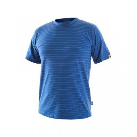 Antistatické tričko s krátkým rukávem, kulatý průkrčník, zdvojené švy, postranní švy. Doporučené použití: ESD prostředí, obsluha CNC strojů a robotů. Velikost: XS-3XLTričko ESD CXS NOME, antistatické, středně modré
