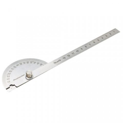 Úhloměr s rozpětím 0 - 180°. Šroub pro zajištění polohy. Vyryté značení pro jednoduché měření.Úhloměr Manutan Expert, 180°