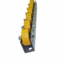 Lišty s jednoduchými kladkami s kluzným ložiskem. Slouží jako univerzální prvky gravitačních dopravníků, montážních linek, spádových regálů a skluzů. U-profil z pozinkovaného plechu. Otvory na spodní straně profilu slouží pro upevnění k podkladu.Univerzální kladičkové lišty, polyuretan, šířka 41 mm, rozteč 50 - 125 mm