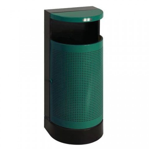Půlkruhový venkovní odpadkový koš. Vybaven pozinkovaným kbelíkem a extra širokým otvorem na přední straně.Venkovní odpadkový koš 35 l – Vepabins