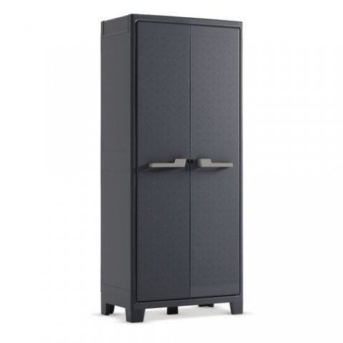 Plastová skříň s povrchem odolným vůči UV záření je vhodná pro úschovu nářadí, nástrojů apod. ve venkovním prostředí. Skříň je odolná povětrnostním vlivům, vlhkosti a vysokým teplotám i chemicky agresivnímu prostředí. Police jsou výškově nastavitelné. Pro větší stabilitu je skříň opatřena pátou nohou. Skříň lze uzamknout visacím zámkem (není součástí dodávky). rozměry v x š x h: 182 x 80 x 44 cm materiál: plast uzamykání visacím zámkem (není součástí dodávky), dodávka v demontovaném stavu, součástí dodávky jsou zelené i šedé úchyty dveříVenkovní plastová skříň, 182 x 80 x 44 cm