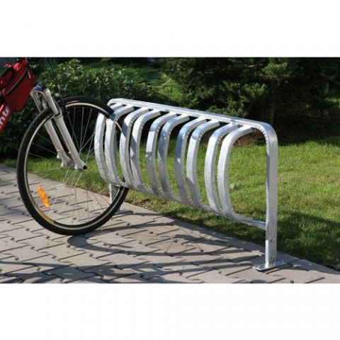 Stojan na kola pro všechny typy kol a šířky plášťů do 40 mm. Držák kol z ocelových lamel je určený k zabetonování. Povrchová úprava žárovým zinkováním.Venkovní stojan na kola Charly, pro 5 kol