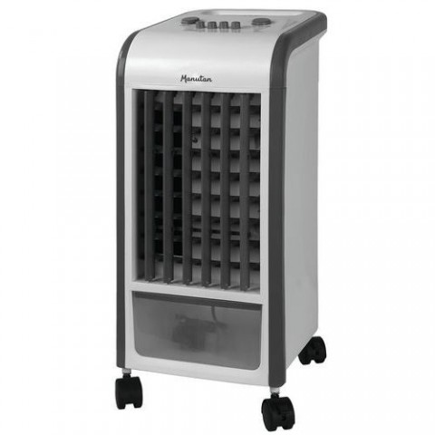 Ochlazovač se zabudovaným zvlhčovačem vzduchu. Zásobník na vodu o objemu 3,5 l. Tři stupně chlazení. Vytváří dojem přirozeného větru. Jednoduchá manipulace pomocí koleček.Ventilátor Manutan Expert se zvlhčovačem vzduchu, 65 W