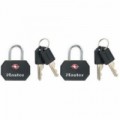 Set 2 ks visacích zámků o šířce 30 mm pro zavazadla schválen agenturou TSA. Hliníkové těla zámků mají ABS ochranný obal. Třmen z oceli o průměru 3 mm je odolný proti přeřezání a přestřižení. Zámek obsahuje cylindrickou vložku se 3 stavítky se společným klíčem. Bezpečnostní třída Master Lock 3. Rozměry (A x B x C mm): 3 x 15 x 11 mm.Cestovní visací zámky Master Lock TSA 4681EURTBLK, 2 ks, černá