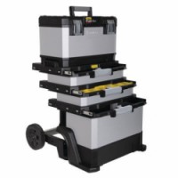 Konzolový systém otevírání: současný přístup do všech oddílů. Odnímatelný box na nářadí s integrovaným držákem na nářadí. Velkokapacitní úložný kufr pro přenosné elektrické nářadí. Široké kovové spojovací prvky odolné proti korozi, které lze uzamknout visacím zámkem.Vozík pro techniky Fatmax® – 2 zásuvky