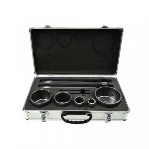 Čtyři vykružovací vrtáky až do průměru 100 mm uložené v kufru s uchycením na SDS MAX nebo SDS PLUS. Obsah balení: Korunka 30, 40, 65, 80, 100 mm. SDS-Plus adaptér 300 mm. SDS MAX adaptér 300 mm. 2 x vodicí vrták.Vrtáky vykružovací, sada 9ks, 30,40,65,80,100mm, SDS PLUS/SDS MAX, stopka 300mm GEKO