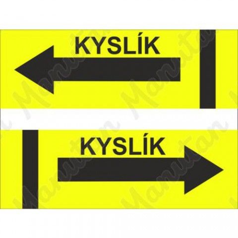 Bezpečnostní značení tabulkou, značkou nebo samolepkou "Značení potrubí - Kyslík" tiskneme na vysoce kvalitním materiálu, barvami s vysokou odolností proti otěru a UV záření. Tím zajišťujeme splnění požadavků Nařízení vlády č. 375/2017 Sb., ČSN ISO 3864-1, ČSN ISO 3864-2, ČSN ISO 3864-3, ČSN ISO 3864-4. Samolepka k značení potrubí. Pro průměr potrubí od 2 cm do 60 cm.Výstražné tabulky - Kyslík
