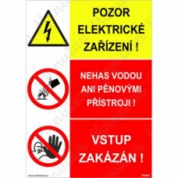 Tabulky, značky a samolepky "POZOR ELEKTRICKÉ ZAŘÍZENÍ!" jsou tištěny na vysoce kvalitním materiálu, barvami s vysokou odolností proti otěru a UV záření. Provedení je plně v souladu s požadavky právních a technických předpisů, zejména Nařízení vlády č. 375/2017 Sb., ČSN ISO 3864-1, ČSN ISO 3864-2, ČSN ISO 3864-3, ČSN ISO 3864-4. Bezpečnostní tabulka slouží k upozornění na elektrické zářizení, které se nesmí hasit vodou a vstup k němu je povolen pouze oprávněným osobám.Výstražné tabulky - Pozor elektrické zařízení