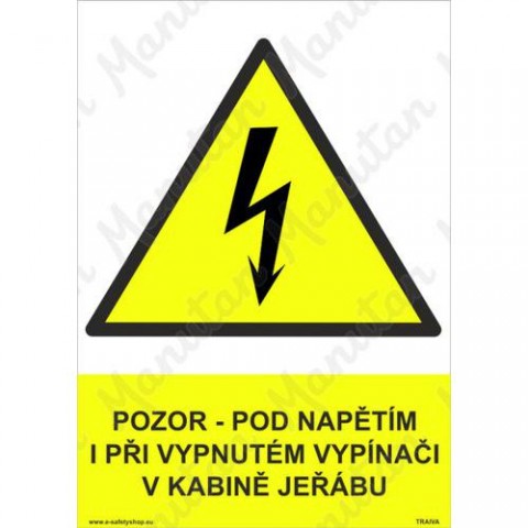 Výstražné tabulky - Pozor pod napětím i při vypnutém vypínači v kabině jeřábu