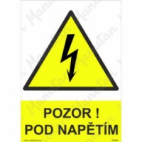 Bezpečnostní značení tabulkou, značkou nebo samolepkou "Pozor! Pod napětím" tiskneme na vysoce kvalitním materiálu, barvami s vysokou odolností proti otěru a UV záření. Tím zajišťujeme splnění požadavků Nařízení vlády č. 375/2017 Sb., ČSN ISO 3864-1, ČSN ISO 3864-2, ČSN ISO 3864-3, ČSN ISO 3864-4.Výstražné tabulky - Pozor pod napětím