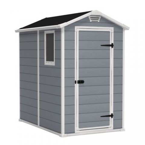 Plastový domek Manor je ideální k uskladnění vašich věcí na zahradě. Kovová konstrukce zajišťuje stabilitu domku. Čerstvý vzduch přiváděn ventilační mřížkou, věci uložené v domku tak zbytečně nevlhnou. Dostatek světla v domku obstarává okno na boční straně. Bezúdržbová zahradní kůlna je uzamykatelná a je odolná vůči vodě, sněhu a UV záření. Rozměry dvěří jsou 160 x 63,5 cm.Zahradní domek Manor 4x6