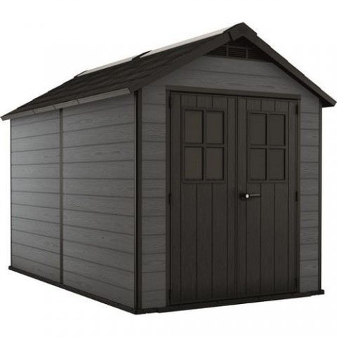 Zahradní domek na nářadí, sekačky, kola, grily a jiná zařízení na zahradu. Robustní konstrukce s dvojitými stěnami vyrobená z materiálu Duotech (dřevo-plast), který je velmi odolný vůči povětrnostním vlivům. Odolná střecha vybavená světlíky unese sníh až do 150 kg na m2. Do stěn lze jednoduše vrtat a připevnit police (nejsou součástí dodání). Kvalitní podlahové panely udržuji nářadí a stroje v suchu a čistotě, lze uložit i těžší vybavení jako jsou sekačky či čtyřkolky aj. Dvoukřídlé široké dveře pro pohodlnou manipulaci. Dveře lze uzamknout (zámek není součástí dodání). Postranní okno pro dostatek světla uvnitř domku. Vnitřní rozměry domku jsou 230 x 324 x 201 cm.Zahradní domek Oakland 7511, šedý