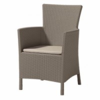 Moderní křeslo na zahradu, terasu nebo balkón pro příjemné sezení. Pohodlí zajišťují pevné područky a měkký podsedák. Vyrobené z plastu v imitaci ratanu. Odolné vůči povětrnostním podmínkám a UV záření.Zahradní křesla Iowa