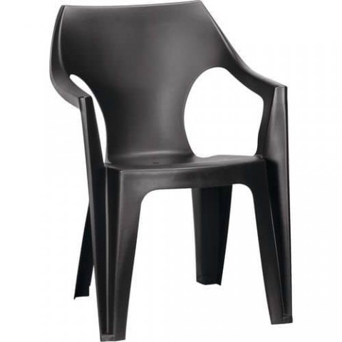 Plastové venkovní židle pro každou zahradu nebo pergolu. Mírně zaoblené opěradlo a pevné područky zajišťuji pohodlné sezení. Promyšlená plastová konstrukce, díky které lze židle na sebe stohovat a šetřit tak místo při jejich skladování. Vysoká odolnost vůči mechanickému poškození, povětrnostním vlivům a UV záření. Jednoduchá údržba měkkým hadrem s vodou a saponátem. Celkové rozměry židle (v x š x h) jsou 79 x 57 x 57 cm.Zahradní plastové židle Dante