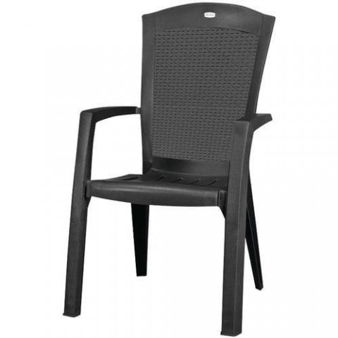Plastové židle na zahradu, pergolu nebo balkón. Vysoký opěrák s imitací ratanu zajišťuje komfortní sezení. Židle na sebe lze stohovat a šetřit tím místo ve vaší garáži nebo kůlně. Odolné vůči nepříznivým povětrnostním vlivům a UV záření. Jednoduchá a rychlá údržba měkkým hadříkem a vodou se saponátem. Rozměry židle jsou 99 x 61 x 65 cm.Zahradní plastové židle Minesota