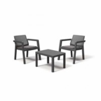 Venkovní sedací sestava pro relax na zahradě, terase nebo balkóně. Sada obsahuje dvě křesílka s podsedáky a konferenční stolek. Odolná konstrukce s jednoduchou údržbou, odolná vůči UV záření. Jednoduchá a rychlá montáž bez použití nářadí. Rozměry křesla 68 x 64 x 75 cm Rozměry stolku 65 x 47 x 42 cmZahradní set Emily Balcony