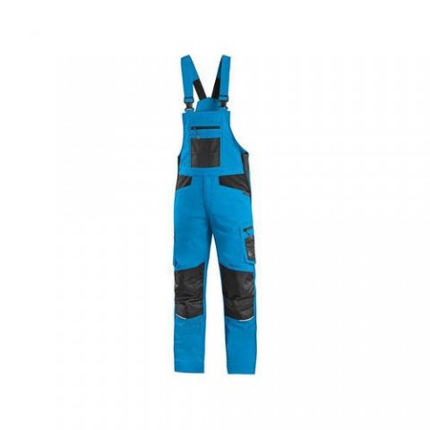 Pánské pracovní zahradníky z materiálu Move & Flex, který je vysoce odolný, flexibilní a umožňuje volný pohyb bez omezení. V bocích se nachází pruženka pro snadné oblékání a lepší přizpůsobení se postavě. Sed kalhot je zesílen pro vyšší odolnost a delší výdrž oděvu. Ergonomická kolena jsou vyztužena materiálem 600D polyester. Kalhoty jsou vybaveny zipovou a dělenou náprsní kapsou, předními kapsami, zadní kapsou a bočními multifunkčními kapsami s vyztužením 600D polyester. Šle jsou odpruženy gumou v zadní části. Reflexní doplňky zvyšují bezpečnost v prostředí se zhoršenou viditelností. Kalhoty jsou vybaveny EASY-PROLONG systémem, který umožňuje snadné prodloužení střihu na vyšší postavu uvolněním švu na nohavicích. Doporučené použití: strojírenství, stavebnictví, lehký průmysl, automobilový průmysl, logistika, skladová manipulace, spedice, autoservisy, údržba, montáže, zemědělství, zahrada, hobby. Velikost: 46-64 Reflexní doplňky: Ano EASY-PROLONG systém: AnoZahradníky CXS SOLIS FLEX, pánské, modro-černé