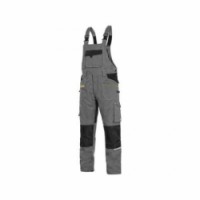 Pánské montérkové kalhoty s náprsenkou - zkrácená varianta na výšku 170-176 cm. Strečová tkanina umožňující volný pohyb, náprsní kapsa s klopou, pas s poutky na opasek, přední kapsy s kapsou na zip, multifunkční kapsy na obou stranách, kolena zesílena 600D polyesterem s možností vložení kolenních výztuh, dvě zadní kapsy - jedna s klopou, zadní spodní lem nohavice vyztužen 600D polyesterem, šle s gumou vzadu, reflexní doplňky. Doporučené použití: strojírenství, stavebnictví, lehký průmysl, automobilový průmysl, logistika, skladová manipulace, spedice, autoservisy, údržba, montáže, zemědělství, zahrada, hobby. Velikost: 44-64 Svrchní materiál: 98 % bavlna 2 % elastan Reflexní doplňky: Ano OEKO-TEX® STANDARD 100: AnoZahradníky CXS STRETCH, 170-176cm, pánská, šedo - černé