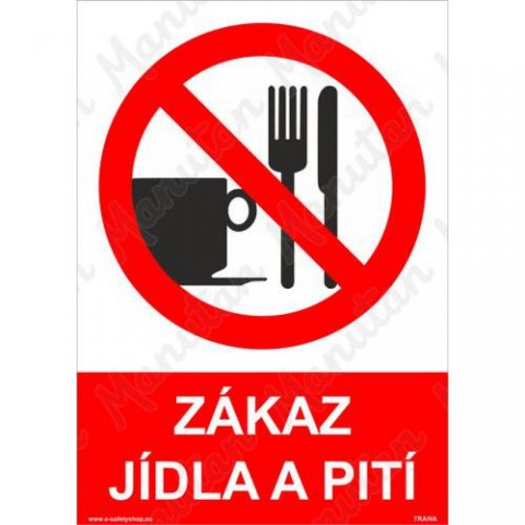 Bezpečnostní značky, tabulky nebo samolepky "Zákaz jídla a pití" splňují požadavky právních a technických předpisů, zejména Nařízení vlády č. 375/2017 Sb., ČSN ISO 3864-1, ČSN ISO 3864-2, ČSN ISO 3864-3, ČSN ISO 3864-4. Používá se k označení míst a objektů, kam je zákaz vstupu s jídlem a pitímZákazové tabulky - Zákaz jídla a pití