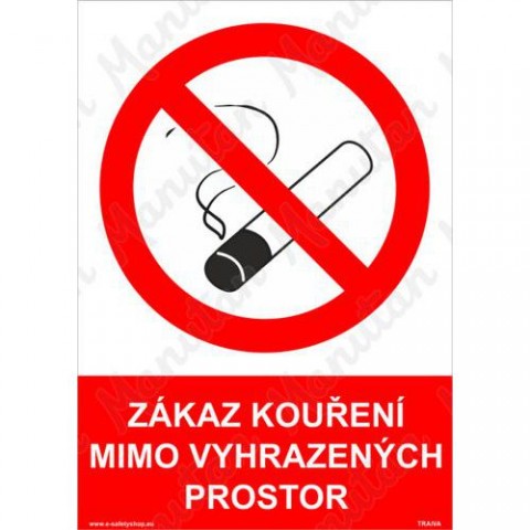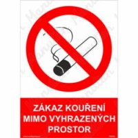 Bezpečnostní značka, tabulka nebo samolepka "Zákaz kouření mimo vyhrazených prostor" plně odpovídá požadavkům právních a technických předpisů, zejména Nařízení vlády č. 375/2017 Sb., ČSN ISO 3864-1, ČSN ISO 3864-2, ČSN ISO 3864-3, ČSN ISO 3864-4. Používá se k označení míst a objektů, kde je zákaz kouření mimo vyhrazený prostor.Zákazové tabulky - Zákaz kouření mimo vyhrazených prostor