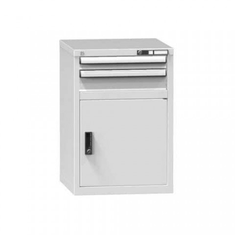 Zásuvková skříň je opatřená mechanismem centrálního zamykání a blokace zásuvek. Zásuvky jsou základním skladovacím prvkem, a proto splňují vysoké požadavky na pevnost a stabilitu. Korpusy zásuvkových skříní tvoří svařenec jednotlivých konstrukčních dílů z kvalitních ocelových plechů. Vnitřní konstrukce korpusů je opatřena perforací po 25 mm. Tuto perforaci využíváme k uchycení vodicích lišt zásuvek, jejich výškovému uspořádání a nakonfigurování požadované zásuvkové sestavy. Přestavování vodicích lišt nebo háčků polic probíhá jednoduše a velice rychle bez použití nástrojů.Zásuvkové skříně ZA2, 578 x 600 x 840 mm