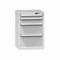 Zásuvková skříň je opatřená mechanismem centrálního zamykání a blokace zásuvek. Zásuvky jsou základním skladovacím prvkem, a proto splňují vysoké požadavky na pevnost a stabilitu. Korpusy zásuvkových skříní tvoří svařenec jednotlivých konstrukčních dílů z kvalitních ocelových plechů. Vnitřní konstrukce korpusů je opatřena perforací po 25 mm. Tuto perforaci využíváme k uchycení vodicích lišt zásuvek, jejich výškovému uspořádání a nakonfigurování požadované zásuvkové sestavy. Přestavování vodicích lišt nebo háčků polic probíhá jednoduše a velice rychle bez použití nástrojů.Zásuvkové skříně ZA4, 578 x 600 x 840 mm