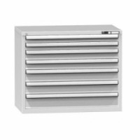 Zásuvková skříň je opatřená mechanismem centrálního zamykání a blokace zásuvek. Zásuvky jsou základním skladovacím prvkem, a proto splňují vysoké požadavky na pevnost a stabilitu. Korpusy zásuvkových skříní tvoří svařenec jednotlivých konstrukčních dílů z kvalitních ocelových plechů. Vnitřní konstrukce korpusů je opatřena perforací po 25 mm. Tuto perforaci využíváme k uchycení vodicích lišt zásuvek, jejich výškovému uspořádání a nakonfigurování požadované zásuvkové sestavy. Přestavování vodicích lišt nebo háčků polic probíhá jednoduše a velice rychle bez použití nástrojů.Zásuvkové skříně ZC7, 1037 x 600 x 840 mm