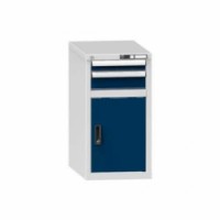 Zásuvková skříň je opatřená mechanismem centrálního zamykání a blokace zásuvek. Zásuvky jsou základním skladovacím prvkem, a proto splňují vysoké požadavky na pevnost a stabilitu. Korpusy zásuvkových skříní tvoří svařenec jednotlivých konstrukčních dílů z kvalitních ocelových plechů. Vnitřní konstrukce korpusů je opatřena perforací po 25 mm. Tuto perforaci využíváme k uchycení vodicích lišt zásuvek, jejich výškovému uspořádání a nakonfigurování požadované zásuvkové sestavy. Přestavování vodicích lišt nebo háčků polic probíhá jednoduše a velice rychle bez použití nástrojů.Zásuvkové skříně ZH2, 442 x 753 x 840 mm