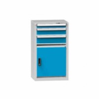 Zásuvková skříň je opatřená mechanismem centrálního zamykání a blokace zásuvek. Zásuvky jsou základním skladovacím prvkem, a proto splňují vysoké požadavky na pevnost a stabilitu. Korpusy zásuvkových skříní tvoří svařenec jednotlivých konstrukčních dílů z kvalitních ocelových plechů. Vnitřní konstrukce korpusů je opatřena perforací po 25 mm. Tuto perforaci využíváme k uchycení vodicích lišt zásuvek, jejich výškovému uspořádání a nakonfigurování požadované zásuvkové sestavy. Přestavování vodicích lišt nebo háčků polic probíhá jednoduše a velice rychle bez použití nástrojů.Zásuvkové skříně ZN2, 578 x 464 x 990 mm