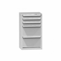 Zásuvková skříň je opatřená mechanismem centrálního zamykání a blokace zásuvek. Zásuvky jsou základním skladovacím prvkem, a proto splňují vysoké požadavky na pevnost a stabilitu. Korpusy zásuvkových skříní tvoří svařenec jednotlivých konstrukčních dílů z kvalitních ocelových plechů. Vnitřní konstrukce korpusů je opatřena perforací po 25 mm. Tuto perforaci využíváme k uchycení vodicích lišt zásuvek, jejich výškovému uspořádání a nakonfigurování požadované zásuvkové sestavy. Přestavování vodicích lišt nebo háčků polic probíhá jednoduše a velice rychle bez použití nástrojů.Zásuvkové skříně ZN3, 578 x 464 x 990 mm