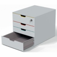 Zásuvkový modul se 4 zásuvkami (dvě velké a dvě malé). Uzamykatelná horní zásuvka s cylindrickým zámkem, ideální k uložení důvěrných dokumentů a osobních věcí. Zásuvka je vybavena zarážkou a tiše se zavírá. Vhodné pro ukládání souborů formátu A4, Folio a Letter. Dodává se s průhlednými držáky štítků a vyměnitelnými vložkami Bristol.Zásuvkový modul Durable VARICOLOR® MIX 4 Safe, 4 zásuvky
