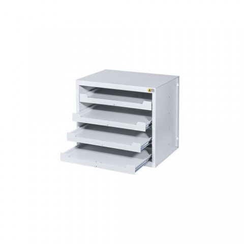 Kovový zásuvkový stojan z ocelového plechu. Kompatibilní s kovovými a plastovými organizéry Europlus Pro. Maximální nosnost jedné zásuvky je 30 kg. Volně stojící nebo montáž na zeď. Maximální nosnost celého stojanu je 50 kg při montáži na zeď. Lze stohovat.Zásuvkový stojan na kufry Allit Europlus Depot