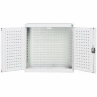 Závěsná kovová skříňka s perforovanou zadní stěnou. Perforovaný zadní panel skříňky v provedení pro umístění držáků nářadí (typ perfo), nebo pro zavěšení plastových boxů (typ louvre). Dvířka skříňky s perforovanou vnitřní stranou pro umístění držáků nářadí (typ perfo). Robustní svařovaná ocelová konstrukce s nosností až do 1 tuny, povrchová úprava práškovým lakem. Zamykání cylindrickým zámkem se dvěma klíči. Plastové boxy a držáky nářadí nejsou součastí dodávky.Závěsné skříňky Bott Cubio s perfopanely