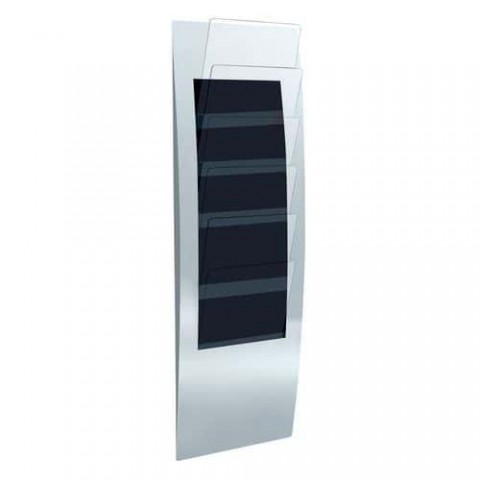 Stabilní nástěnný stojan na brožury.Závěsný držák na prospekty Varia, 6 přihrádek