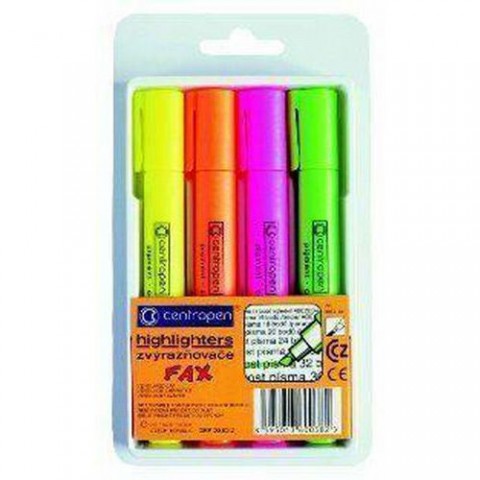 Uvedená cena je za balení. celofluorescenční zvýrazňovač s reflexním inkoustem vhodný pro všechny druhy papíru, včetně faxového a samopropisovacího klínový hrot sada 4 barev - oranžová, růžová, zelená, žlutá prodej po balení 10 ks jedné barvy, nebo v sadě 4 ksZvýrazňovač Centropen 8852