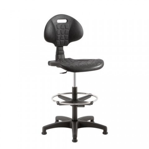 Pracovní židle ze zdravotně nezávadné polyuretanové pěny. Výška průmyslové židle je nastavitelná pomocí plynového pístu povrchově upraveného tvrdochromem. Nosný kříž z pružného plastu v černé barvě. Snadné čištění židle dezinfekcí běžnými prostředky. Materiál je odolný prachu, chemikáliím, olejům i mechanickému poškození v běžném provozu. Zvýšená pracovní židle Kent PK s kluzáky